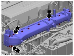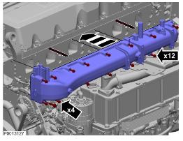 15 將進氣歧管輸導到導向銷上并進行緊固。緊固扭矩:24 ±4 Nm (17.7 ±2.95 lbf.ft.)