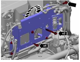 8 松開用于油過濾器支架的連接板并小心朝著熱交換器向前下方折疊連接板。