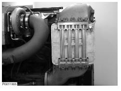 1 拆下沃爾沃volvo柴油機(jī)渦輪和前發(fā)動機(jī)蓋上方的蓋子。拆下前增壓空氣冷卻器上方的蓋子。