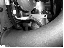 12 檢查接頭是否處于正確的位置。安裝夾子并緊固螺釘。將兩個螺釘安裝到將增壓空氣管固定在一起的連接上。