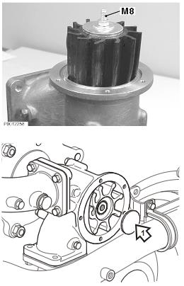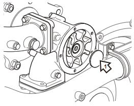 12 將橡膠墊圈(1)安裝到葉輪的中心并將新O 型圈安裝到殼體槽中。