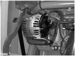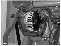 5 拆下交流發(fā)電機連接接頭的上部螺栓并松開下部螺栓。提出交流發(fā)電機。
