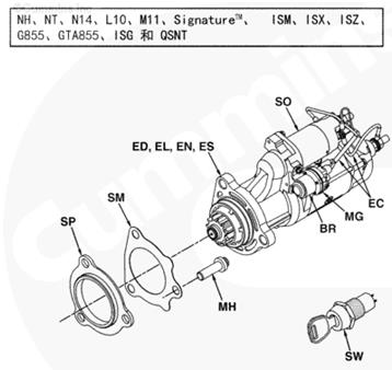 NH、NT、N14、L10、M11、 ISM、ISX、QSX、ISZ、G855、GTA855、ISG 和 QSNT康明斯柴油機(jī)電動(dòng)起動(dòng)馬達(dá)總成配件部件代碼