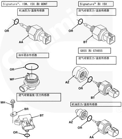 康明斯ISM、ISX、G855、GTA855和QSNT發(fā)動機壓力和溫度傳感器機油壓力/溫度傳感器,燃油含水傳感器,進氣歧管溫度/壓力傳感器,進氣歧管壓力/溫度傳感器,進氣歧管壓力/溫度傳感器,機油壓力/溫度傳感器