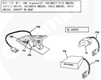 康明斯N14、L10、M11、ISM、Signature™、ISX/QSX11.9/12 CM2250、ISX12 G CM2180、ISX/QSX15 CM2250、ISX12 CM2350、ISX15 CM2350、CENTRY™ 和 QSNT油門傳感器內(nèi)部執(zhí)行器線束配件