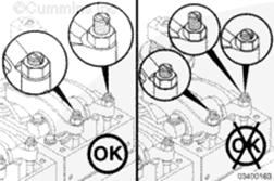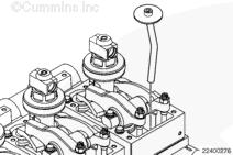 使用維修工具(零件號 3163171(進氣))或(零件號 3163172(排氣))。選擇符合氣門間隙技術(shù)規(guī)范的塞尺。將塞尺插入搖臂套筒和跨接壓板之間。