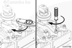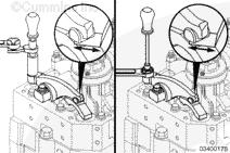 確保零件已對準,并且擰緊調(diào)整螺釘,將機油擠出氣門和噴油器機構(gòu)。