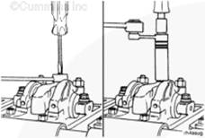 如果搖臂沒有拆過,在有問題的兩個(gè)氣缸上擺動(dòng)氣門搖臂。如果感到氣缸的兩個(gè)搖臂都已松動(dòng),則可以開始調(diào)節(jié)其跨接壓板和氣門。