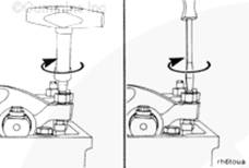 準(zhǔn)備調(diào)整氣門時(shí),氣缸上的調(diào)節(jié)螺釘必須幾乎一樣高(進(jìn)氣螺釘可以高于排氣螺釘兩個(gè)螺紋)。對(duì)于還未做好調(diào)整準(zhǔn)備的第二個(gè)氣缸,其排氣門的調(diào)節(jié)螺釘高于進(jìn)氣螺釘 5 個(gè)螺紋。