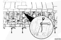 即使活塞冷卻噴嘴輕微地彎曲也能導(dǎo)致發(fā)動機嚴重損壞。如果在解體或組裝過程中活塞冷卻噴嘴彎曲或損壞,則進行更換。