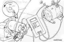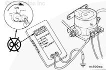 將一支萬用表表筆連接到標(biāo)有“S”的電磁開關(guān)端子上,另一支表筆接地。