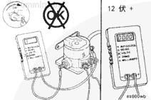 如果萬用表顯示電壓,但啟動(dòng)馬達(dá)不工作,檢查連接啟動(dòng)馬達(dá)電磁閥與鑰匙開關(guān)的導(dǎo)線是否斷裂,并檢查接頭是否松動(dòng)或腐蝕。