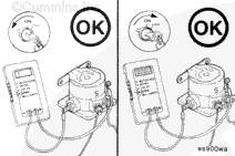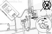 將 Cummins® 數(shù)字萬用表(零件號(hào) 3377161)的表筆或等同物與開關(guān)的兩個(gè)大端子連接。