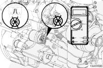如果當(dāng)啟動(dòng)馬達(dá)開關(guān)處在 START(啟動(dòng))位置時(shí)萬用表指示電阻大于 100 千歐,將啟動(dòng)馬達(dá)開關(guān)轉(zhuǎn)至 OFF(斷開)位置。