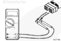 將一根測試導(dǎo)線插入到 OEM 線束接頭的信號觸針中,然后將鱷魚夾連接到一根萬用表表筆上。將第二根測試導(dǎo)線插入到 OEM 線束接頭的第一根觸針中,然后將鱷魚夾連接到另一根萬用表表筆上。