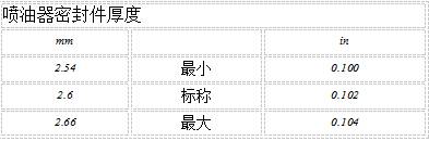 如果噴油器突出量不在技術(shù)規(guī)范范圍內(nèi),則請參考下面的噴油器密封件厚度表,以了解可用的密封件厚度。