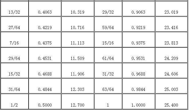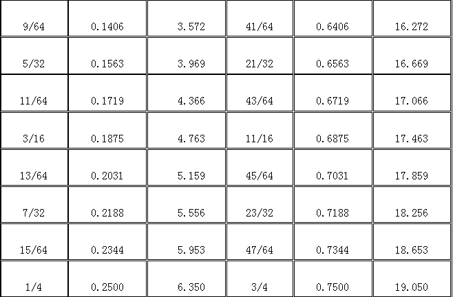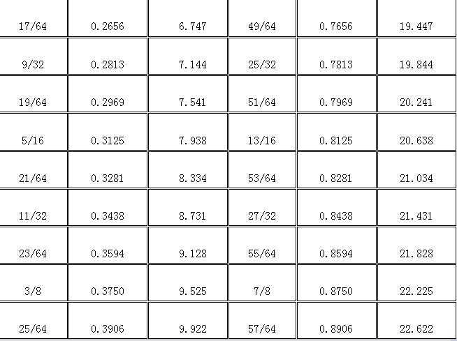 018-010 分?jǐn)?shù)、小數(shù)和毫米之間的換算