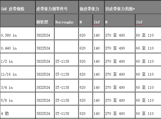 * 如果舊皮帶張力小于最小值,將皮帶調(diào)緊到舊皮帶張力最大值。