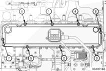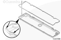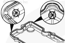 將氣門室蓋密封墊安裝到搖臂室蓋的槽中。先將模壓密封墊壓入氣門室蓋的各個角,然后將其余的密封墊壓入剩下的槽中。 |