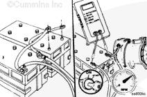 高怠速運(yùn)轉(zhuǎn)康明斯ISL9.5發(fā)動(dòng)機(jī),使用數(shù)字萬(wàn)用表(零件號(hào) 3164488 或 3164489)測(cè)量充電機(jī)輸出到蓄電池上的電壓。參考 OEM 的技術(shù)規(guī)范。