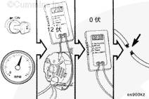 將萬(wàn)用表(康明斯零件號(hào) 3164488 或 3164489)連接至下列位置: