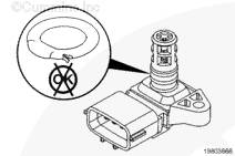 從進(jìn)氣管接頭拆下傳感器。拆卸傳感器時(shí),注意不要損壞 O 形密封圈或包裹住傳感器頂端的塑料盒。不要撬動(dòng)傳感器,這樣可能會(huì)損壞塑料盒。