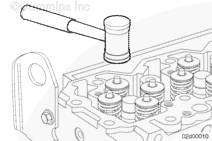 組裝完畢后,用塑料錘敲擊氣門桿,確保鎖片正確座入。 |