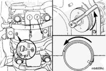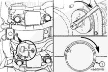 按照可以首先拆下上主軸承定位舌側(cè) (1) 的方向繼續(xù)轉(zhuǎn)動曲軸。