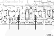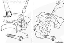 使用干凈的 15W-40 康明斯ISL9.5 CM2150發(fā)動機機油潤滑主軸承蓋下面的螺釘和主軸承螺釘螺紋。