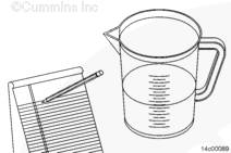 在測試完成后(測試運行 6 分鐘,包括加注和凈化),測量噴入容器的 DEF 數(shù)量。將 DEF 倒入量杯(零件號 4919139)或等同物。