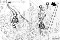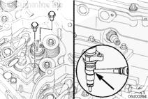 將噴油器以正確的方向放入缸蓋中(燃油進口朝向高壓燃油接頭)。