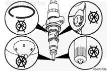 核實新噴油器密封墊圈厚度是否正確。如果密封墊圈不正確會引起噴油器突出量不正確,進而導致高壓燃油泄漏和/或性能問題。