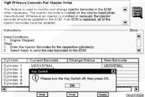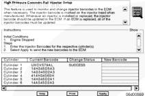 雙擊“噴油器條形碼”旁邊的 ECM 值。輸入將要安裝噴油器的氣缸的噴油器修正信息。