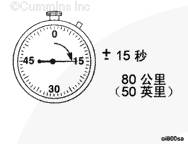 測試?yán)锍?B>必須為 65 至 80 公里 [40 至 50 英里]。