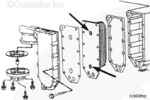 拆下機(jī)油冷卻器蓋、密封墊和機(jī)油冷卻器芯。 |