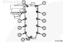 如果機(jī)油冷卻器蓋沒(méi)有凹痕,按所示順序擰緊螺釘。