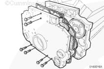 注: 康明斯QSK78柴油機(jī)齒輪室蓋密封墊是邊緣模壓密封墊。檢查密封墊;如在密封墊上發(fā)現(xiàn)任何損壞,則必須進(jìn)行更換。