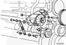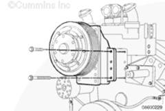 拆卸康明斯QSK78發(fā)動(dòng)機(jī)風(fēng)扇皮帶。參考步驟 008-002。