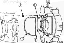 注: 注意密封墊的安裝方位。安裝康明斯QSK78發(fā)動(dòng)機(jī)飛輪殼時(shí),如果密封墊安裝不正確會(huì)導(dǎo)致康明斯QSK78發(fā)動(dòng)機(jī)損壞。