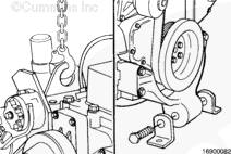 注: 特定應(yīng)用中還需要松開(kāi)康明斯QSK78發(fā)動(dòng)機(jī)后懸置的緊固件,以便拆卸康明斯QSK78發(fā)動(dòng)機(jī)前支架。