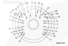 如果對(duì)正不符合技術(shù)規(guī)范但孔是圓的,可以移動(dòng)康明斯QSK78發(fā)動(dòng)機(jī)飛輪殼。如果對(duì)正不符合技術(shù)規(guī)范且孔不圓,必須更換康明斯QSK78發(fā)動(dòng)機(jī)飛輪殼。