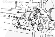 拆下 LTA 康明斯QSK78發(fā)動機水泵。參考步驟 008-062。