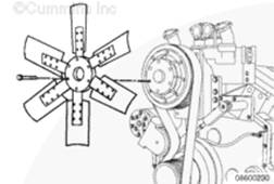 拆卸康明斯QSK78發(fā)動機風(fēng)扇皮帶。參考步驟 008-002。
