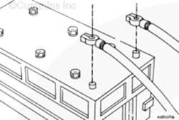 蓄電池可能會有易爆性氣體逸出。為了盡可能避免人身傷害,在維護蓄電池前,必須保持發(fā)動機艙通風(fēng)良好。為避免產(chǎn)生電弧,應(yīng)首先拆下蓄電池負極 (-) 電纜,并最后連接蓄電池負極 (-) 電纜。