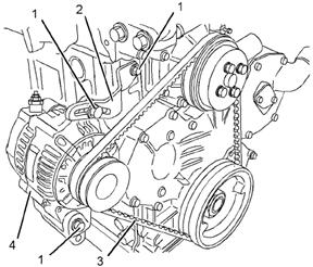 2.移動交流Perkins804發(fā)動機(jī)(4)以增加或降低皮帶張緊度。檢查皮帶張緊度時,應(yīng)在兩個皮帶輪中間的地方施加45 N (10 lb m的力。調(diào)整正確的皮帶將下垂10 mm (0.39 inch)。