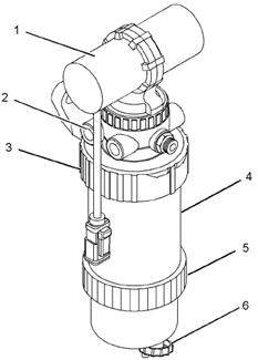 (1) 電動(dòng)燃油充油泵,(2)燃油濾清器底座,(3)快速釋放固定圈,(4)燃油濾清器,(5)沉淀物分離杯,(6)燃油濾清器排放閥,