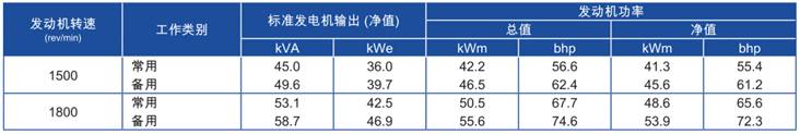 上表所有額定功率數(shù)據(jù)均為ISO/TR 14396/IS0 8528條件下操作時(shí)數(shù)據(jù)。