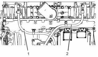 2. 從CAT卡特C13珀金斯2206柴油機(jī)燃油濾清器底座上斷開(kāi)軟管(1)和(2),以便從氣缸蓋上排放燃油。