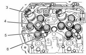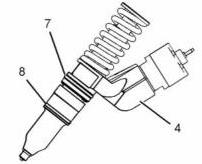 5. 為便于安裝,在CAT卡特C13珀金斯2206柴油機(jī)電子單體噴油器(4)上做一個(gè)識(shí)別標(biāo)記。必須將每個(gè)電子單體噴油器重新安裝到氣缸蓋的原始位置。