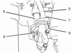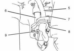 7. 將螺栓(7)和螺栓(9)擰緊至28 N•m(21 lb ft)的扭矩。